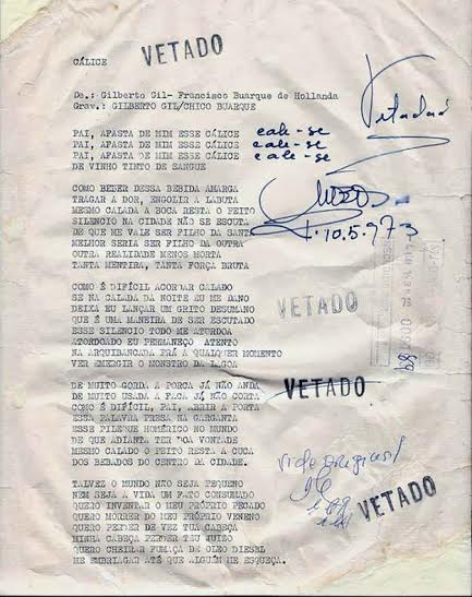 A censura tardia não foi suficiente para impedir o sucesso de Apesar de Você, o que irritou os militares e aumentou a perseguição a Chico. Nos próximos anos, outras composições dele serão vigiadas e censuradas sem espaço para debate. Uma delas é Cálice, escrita em 1973, em colaboração com Gilberto Gil. Referência ao versículo bíblico “Meu pai, se for possível, afaste de mim este cálice”, o título da música faz trocadilho com a expressão “cale-se” e o silenciamento imposto pelo regime militar.