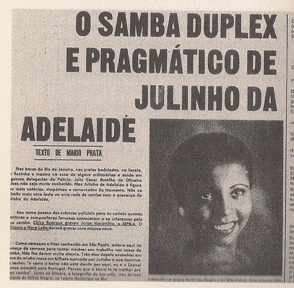 Nesse contexto, o artista carioca, em 1974, apresenta uma criativa solução para driblar a censura: Chico assina diferentes composições com o nome Julinho da Adelaide, um alter-ego inventado para combater a imediata rejeição que ele trazia aos militares. O artista também inventa uma história de vida para Julinho, que seria um músico carioca da Rocinha que migrou das “páginas policiais para as páginas de música”.